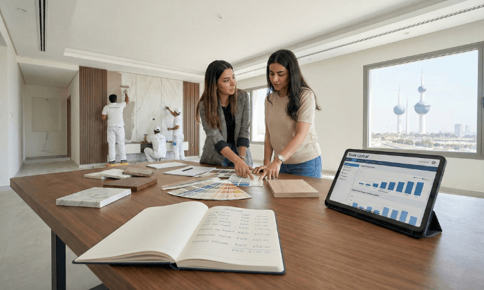 لماذا يخشى الجميع من جملة “السعر عند المعاينة”؟ في سوق المقاولات بالكويت، غالباً ما يواجه العميل ضبابية في الأسعار، مما يؤدي إلى مخاوف من التكاليف المخفية أو الزيادات المفاجئة بعد بدء العمل.
